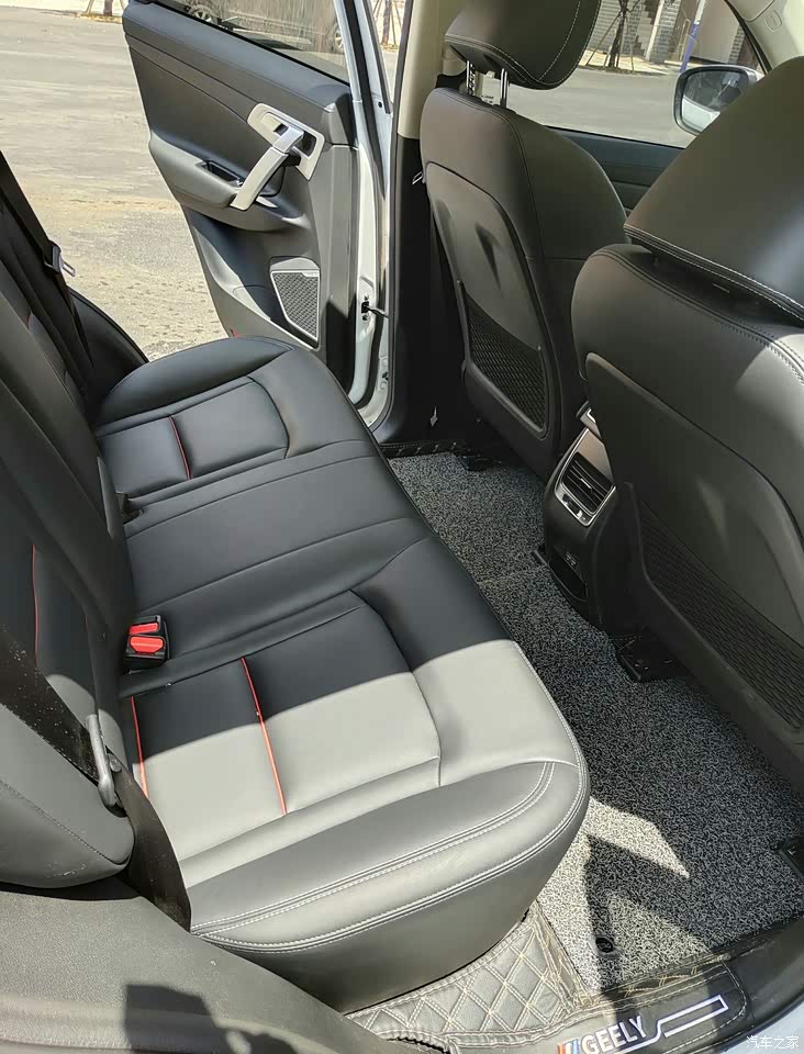 其它车型很多后排中间那都是凸起的,吉利博越后排采用平整化设计,加大了后排空间。