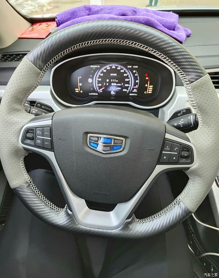 多功能方向盘,加上自己手工缝制的一个方向盘套,握感非常好!