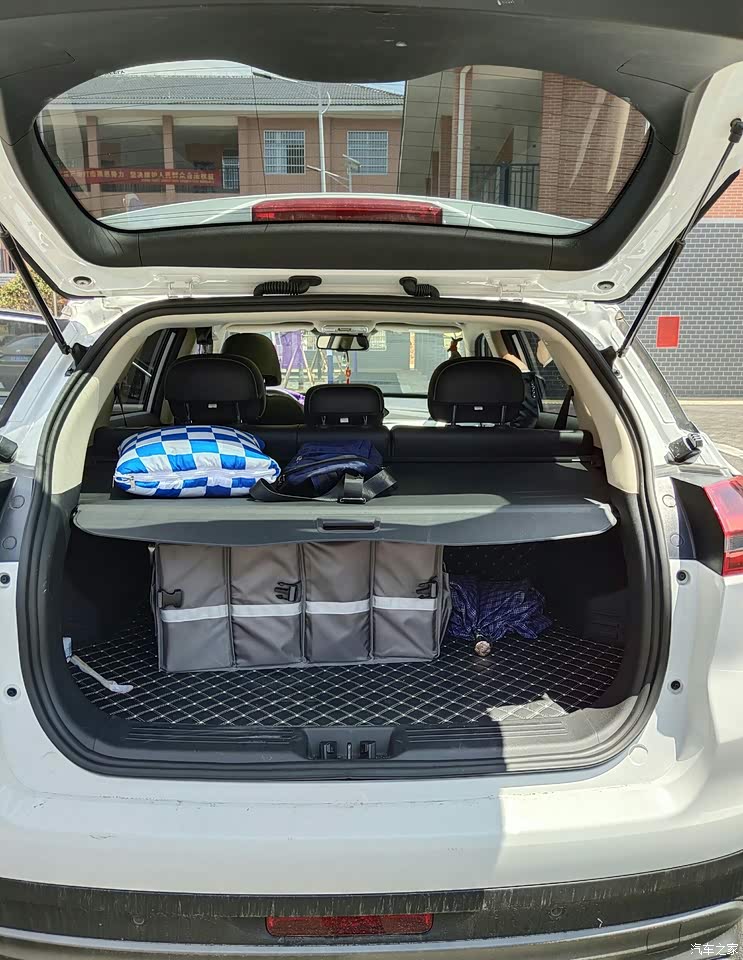 后备箱储物空间,虽然有点小,放一个收纳箱还是有很大空间余留的。