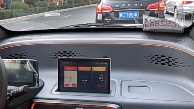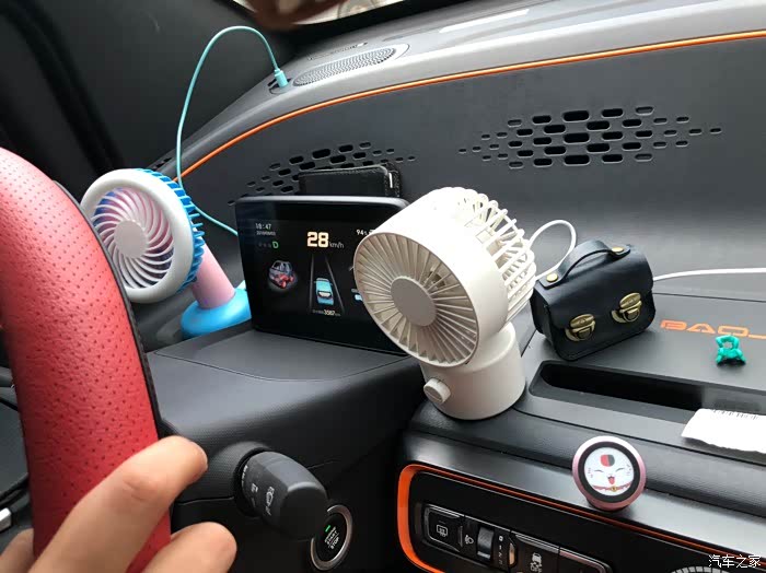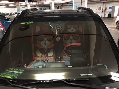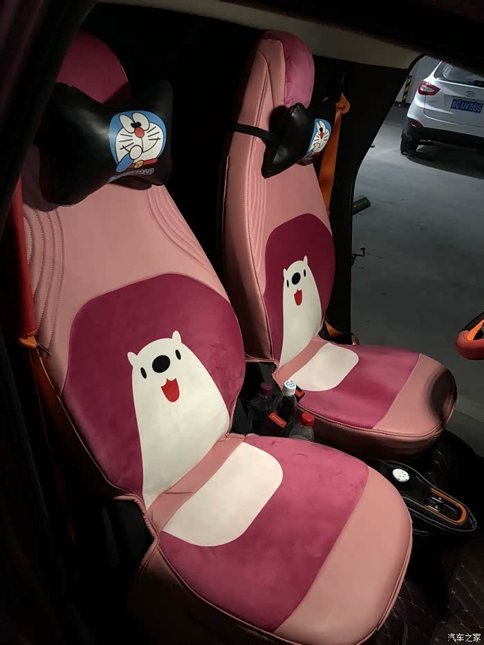 我购买的E100为深灰色内饰,玻璃反光不大,相当耐看。 我个人对平板依赖不大,将平板拿掉,中控处的小平台有磁铁,可以用来做手机支架,也可以用来装饰小物,非常实用。 官方座椅套真的很可爱,难以割舍。
