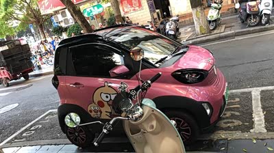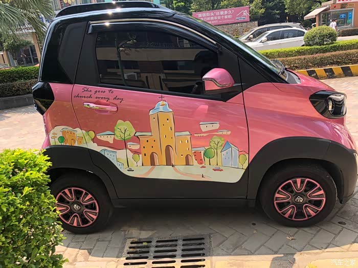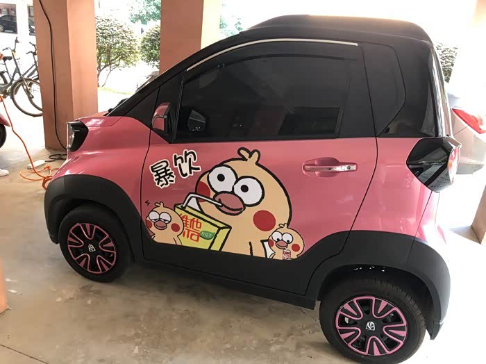 说真的,外观也是选择小E的重要一点。粉红白蓝灰(银),共五色,我选择的粉色并不浮夸,相当可爱,配上车身拉花,真是很漂亮了。