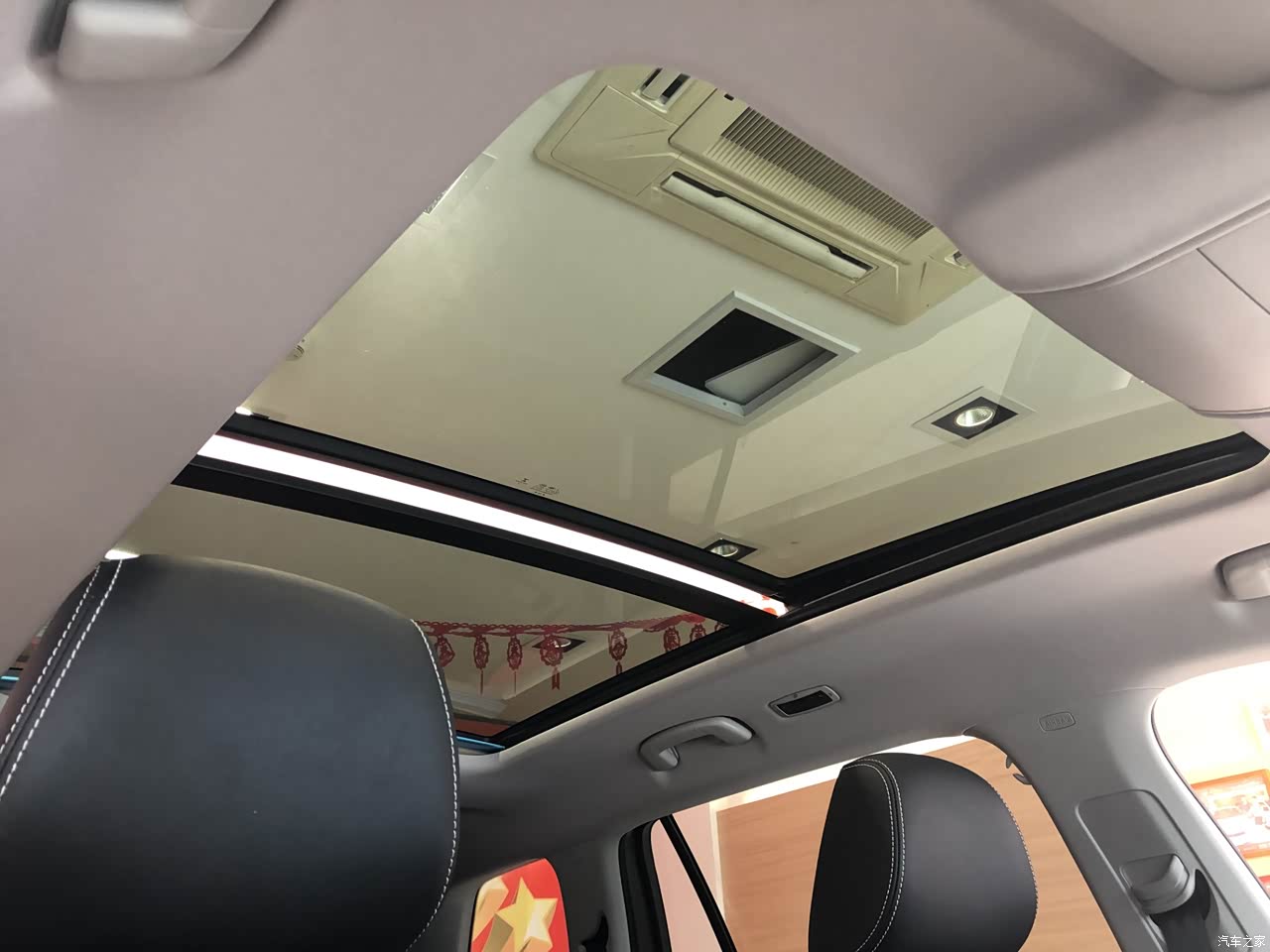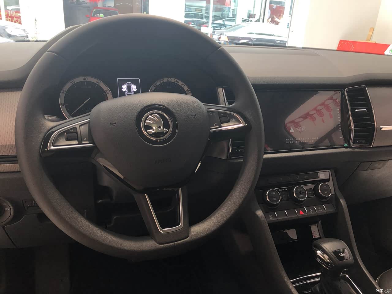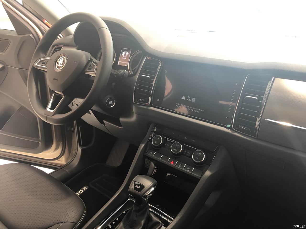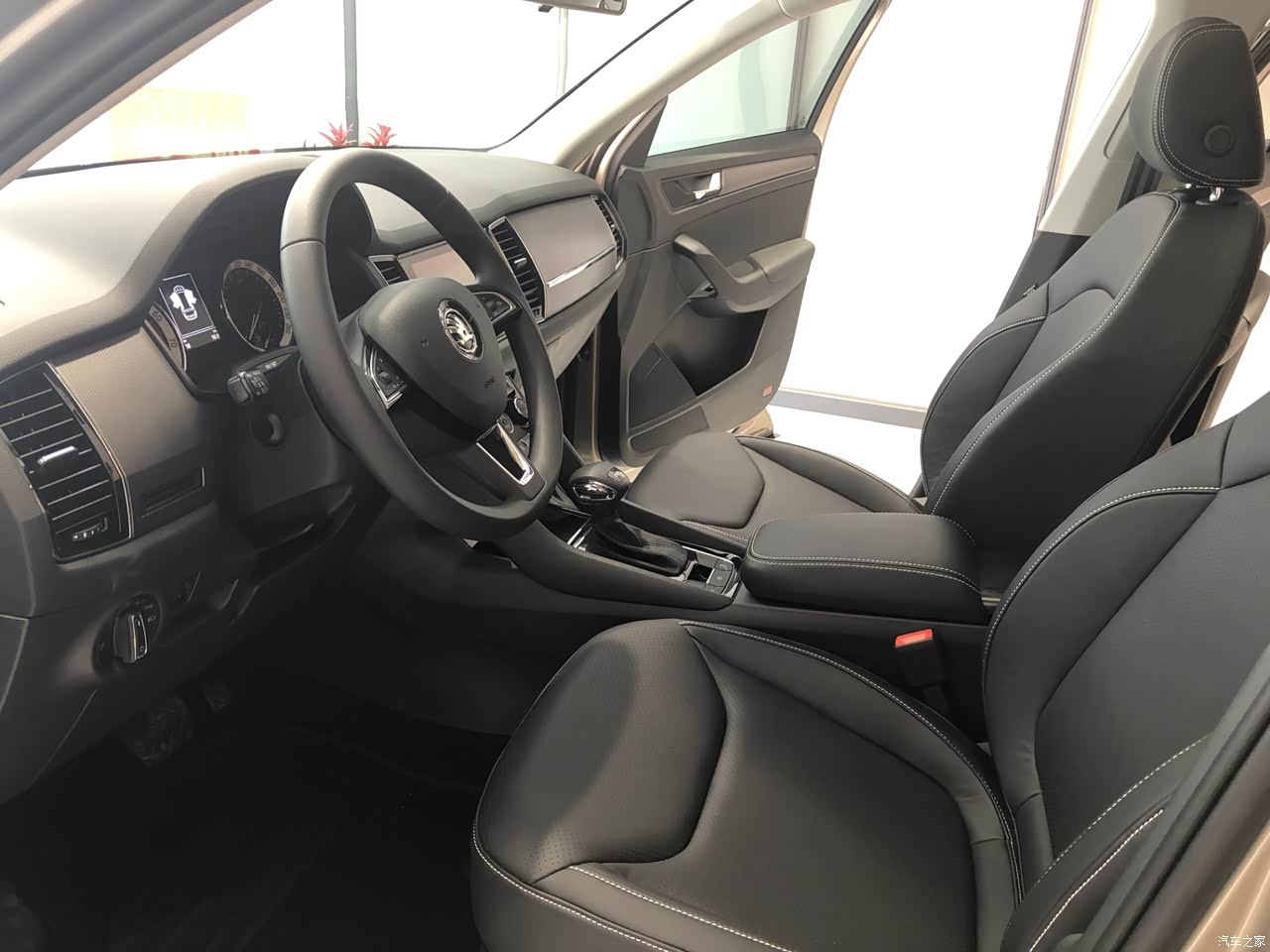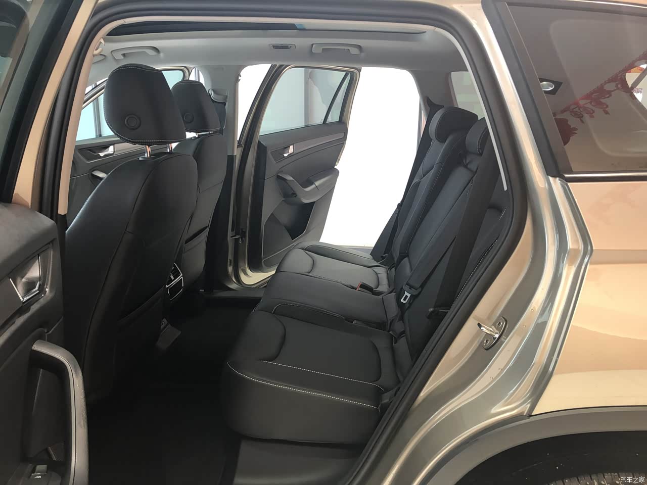 内饰上,大柯主打的就是实用,总体的内饰设计比较中规中矩,但是储物空间非常的丰富,有种居家的感觉。内部配上全景大天窗,看起来大气了不少,内部的视野也提升了很多。但是门把的用料方面还需要改进,塑料感明显,会有小异响。