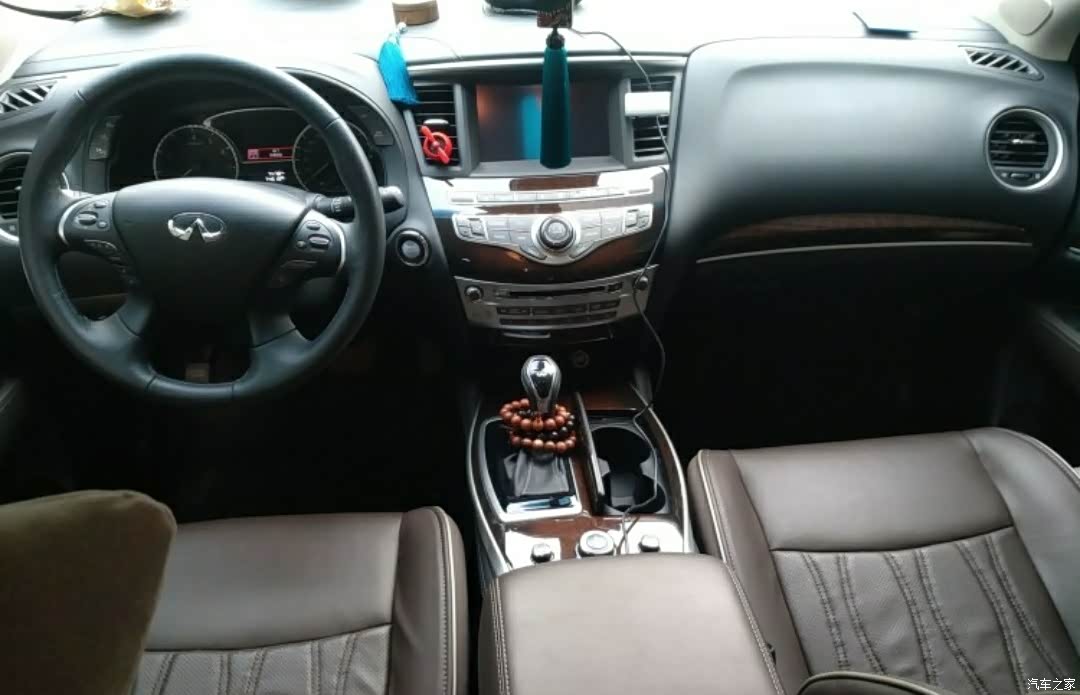 偶然一次在路上看见英菲尼迪这款车,被它的造型拿住眼球。现在停在门口的这辆车看上去威武霸气,每天出来看着很爽。主要是车里空间大,里面很有质感,开起来也很有推背感,相比较其他来说性价比高多了。对于这种大型SUV来说算是相当满意,驾驭他征服他不错的体验,也可以和朋友享受这舒服的感觉。