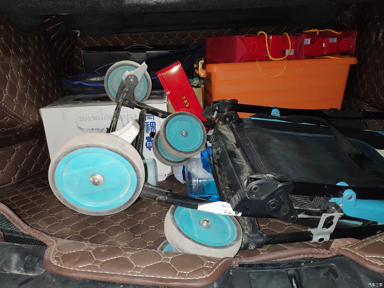 看看我后备箱塞了多少东西,最里面还有两个大箱子,剩余的空间还能放好多东西。