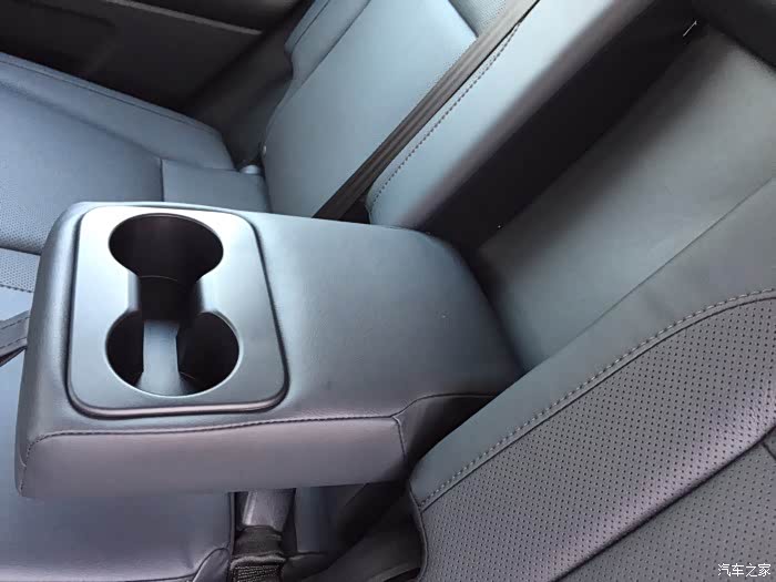 后排有中央扶手,还带杯架,空间利用很到位啊!