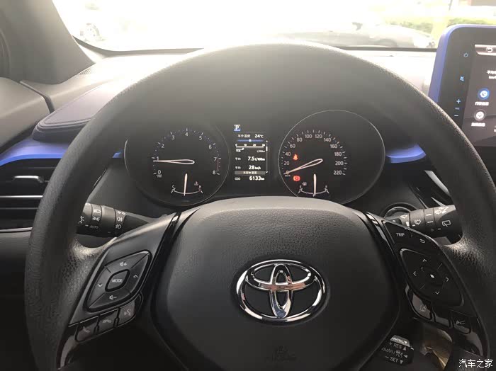 丰田的方向盘好像都很轻,试驾的时候媳妇对这款方向盘可满意了。但是对于我来说还是欠缺了一点手感,主要是媳妇开着上下班她满意就行。方向盘上还自带定速巡航功能,跑高速超级方便。刹车的时候也比较及时,我们都是温柔驾驶型的,操作起来比较容易上手。自动启停的功能点火也比较及时。