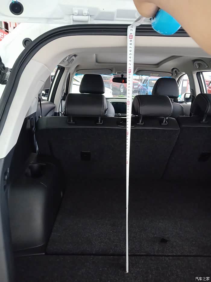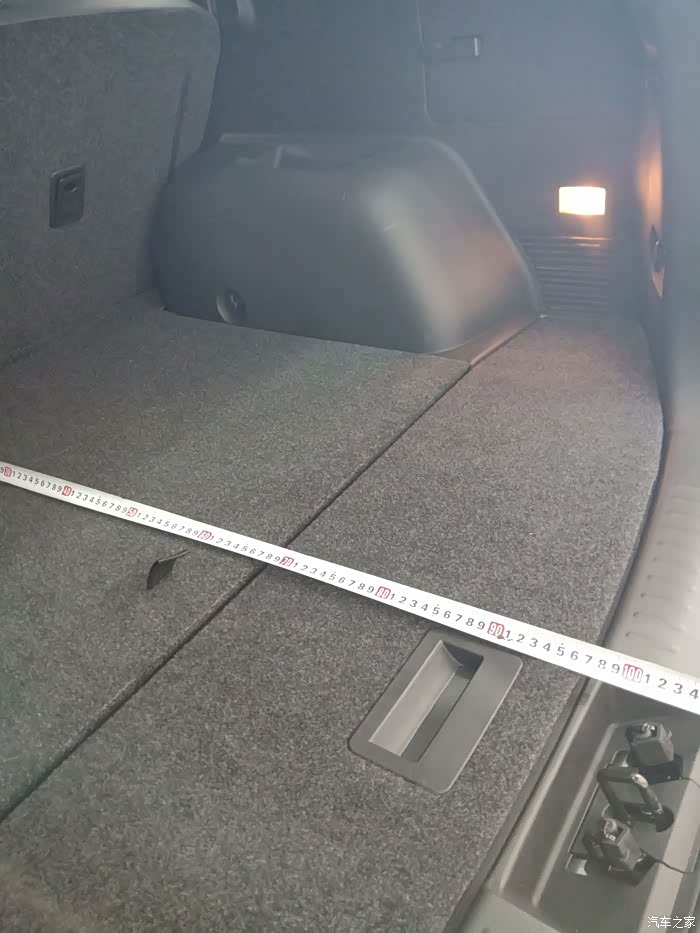 我问工作人员有没有尺,我还用尺子测量了一下,后排空间蛮大,把第二排倒下1.7-8米的空间,夏天到了我和老婆、女儿晚上去山里歇凉,然后把全景天窗打开还可以摊着看星星,带两罐冰啤酒和果汁喝着舒服啊,带一床空调被或者凉席铺着,三人躺着很合适。