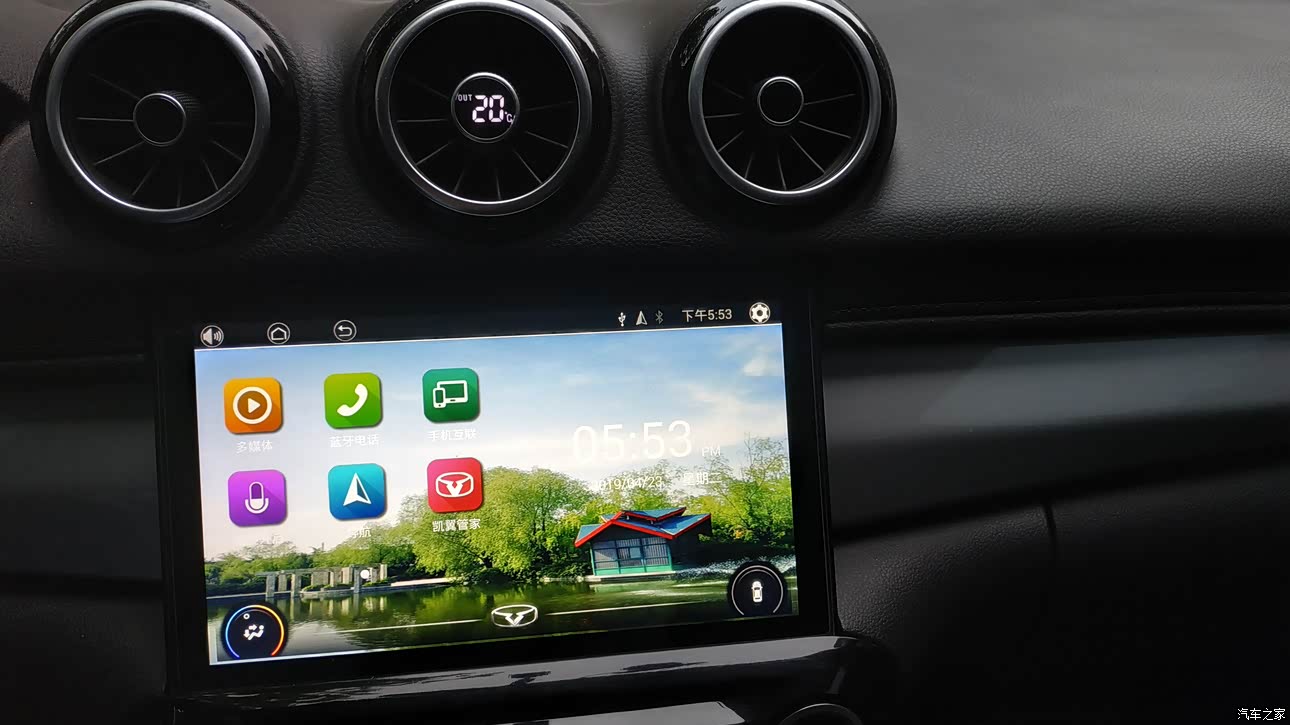 帅气的中控大屏,帅气的空调出风口,可以显示外界温度