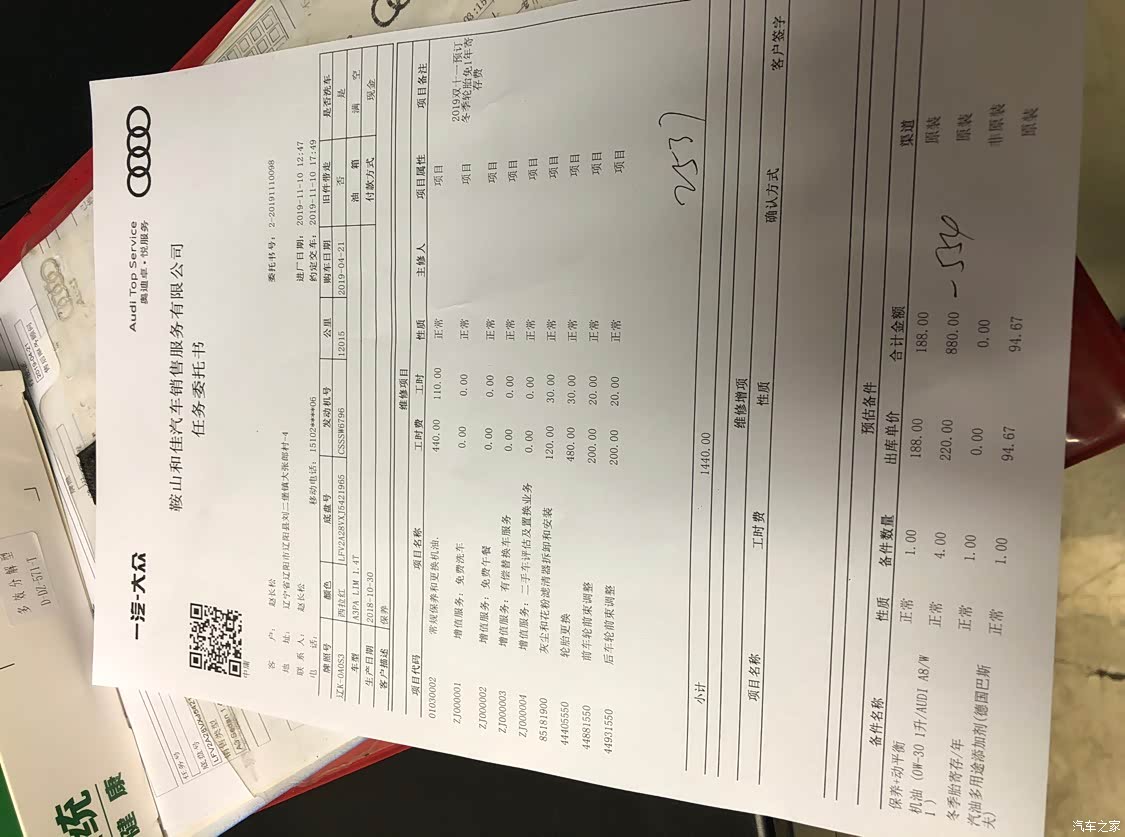 一个月之前做的首保,补差价换的嘉实多极护030的,加了4桶,正好在机油尺中间刻度,后来怕开起来以后机油带到缸筒里面之后油会有点少,又买了一瓶往里面加了一点点。所以油放干净了正常加4.5升差不多。然后清洗了一下发动机,算上机油差价一共花了800多不到900的样子。不算上我后来买的那桶机油。嘉实多极护030 4s卖220一桶。