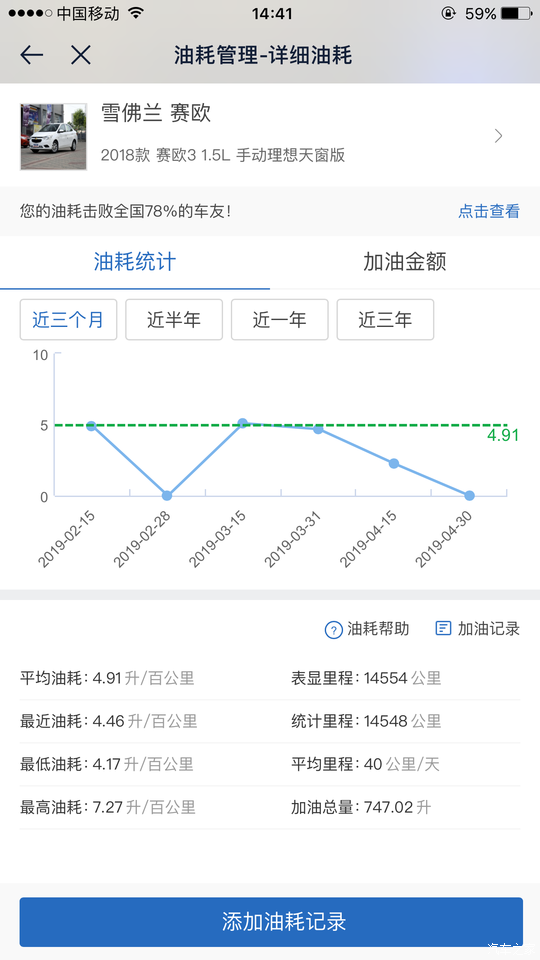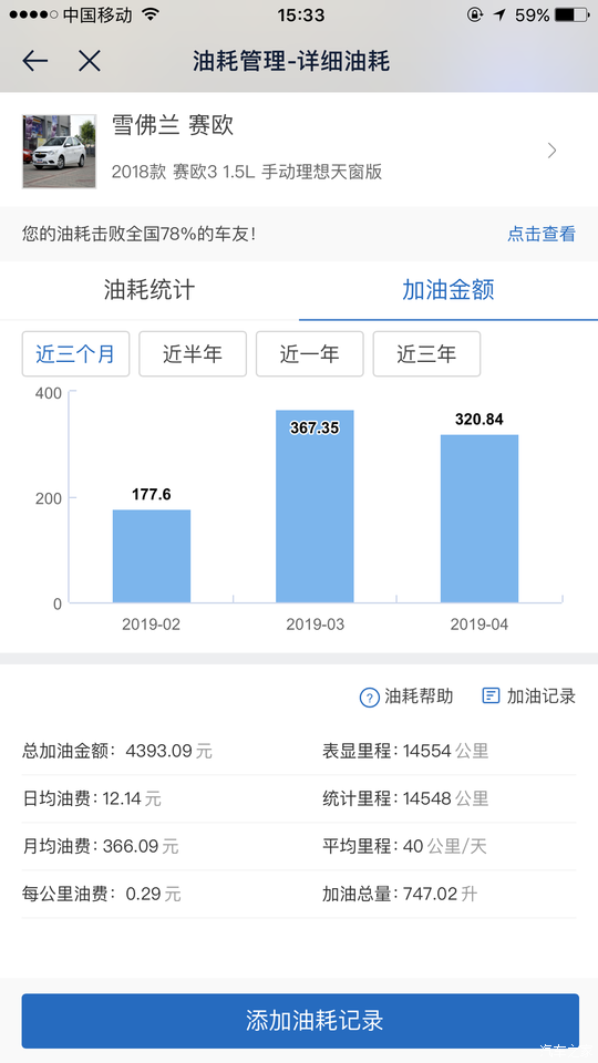 这是买车以来所有的加油记录,还是很省油的