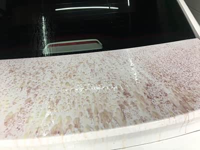 车身上全是小黄点,最后去我朋友那里处理了一下,弄了什么喷剂喷的,喷完上面全是红色的东西,最后擦干净了