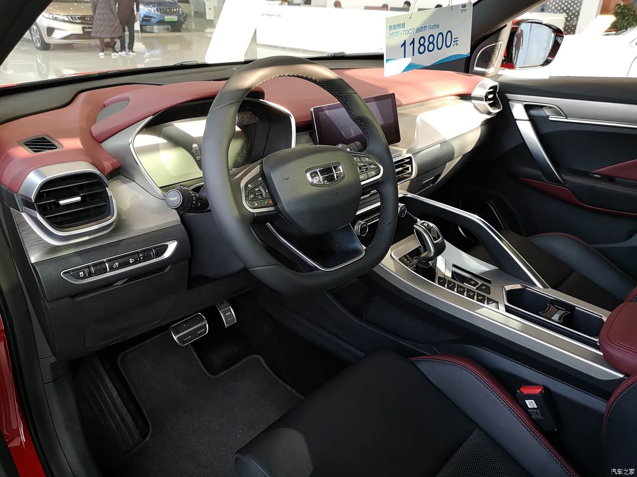 内饰配色棕黑相间,软搪塑有点仿皮质,硬塑料做成亚光、拉丝,相互搭配毫无违和感。平底裹皮方向盘、仿F22矢量发动机排气的空调出风口、包裹性极强的皮、织拼接座椅,轻易就能激发驾控欲望。 朋友试驾夸奖中控像坐进飞机驾驶舱。