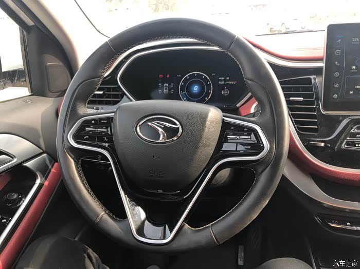 内饰比较豪华,中控台,比较大气,尤其超大的显示屏,比较上档次,多功能方向盘,比较人性化,设计的比价好,用起来比较方便。皮质座椅,易清洗,豪华。中控门把手,全都是软包式的,这价位的车做到这程度很不容易,真心不错。