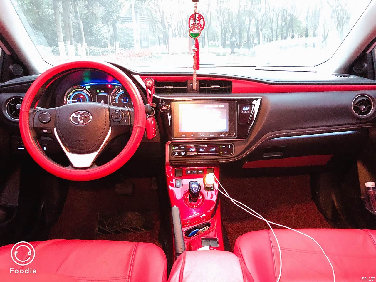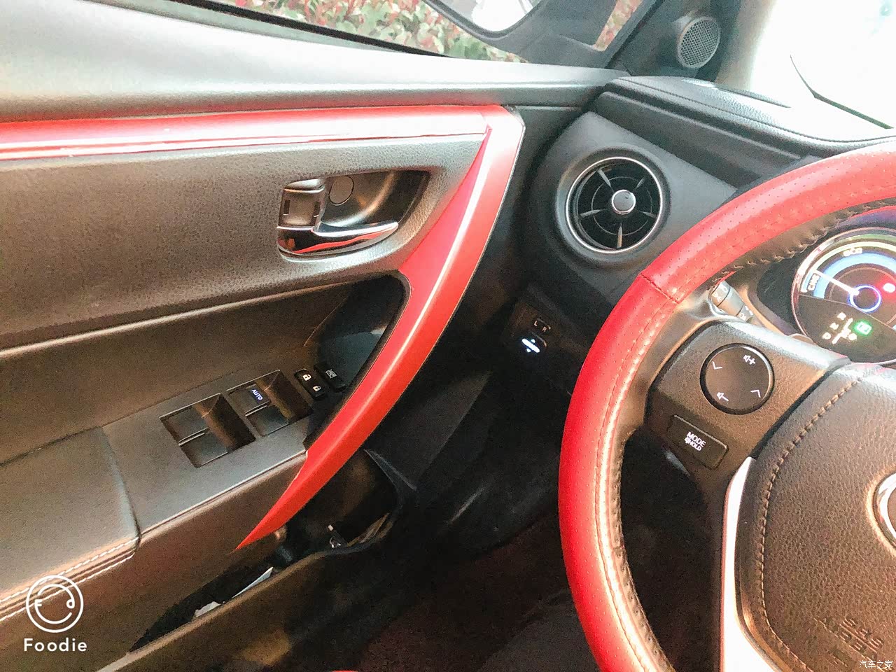 对于女孩子来说,最重要的是什么?当然是颜值了,小白的颜值我还是非常认可的。led远近光一体大灯在晚上十分醒目,尾灯也是led的。我可讨厌黄色卤素灯光了。丰田标带有蓝色logo很炫酷呦。整体外观造型属于长久耐看型。特有的专属标记在马路上还是比较亮眼的。内室的设计比较中规中矩,对称布局。不过没事我已经把内室装饰成喜爱的风格,对头,我把中控面板变成红色调有点小小骚气。都是自己弄的是不是很心灵手巧。内室的用料我是很满意的。中控台都是软质的材料,摸着舒服。四个门上沿也是软的。电子档位米你小巧,着实让人喜欢。仪表上的设计呢充满科技感,蓝色调调就和双擎的名字一样这么富有特征。说点实质性的用车感受,小白的动力非常强劲,特别是起步提速那感觉没的说了,起步提速可以秒杀一切,有点无法无天了我起步很安静,没有发动机的轰鸣声,这种感觉,汽油车上是体验不到的。1.8的发动机配合电机,这种感觉很满足,他有三种动力模式eco节油,正常,power对于城市道路我会把eco打开,既省油又好开。正常模式下得动力很充沛,跟不用说把power模式打开了。对了还有一个ev模式,这个模式在有足够电的情况下可以50左右的速度开。油门力度大会解除。开的过程不用太在意用油用电,自己会切换,很智能。好马配好鞍,小白的地盘很扎实,稳妥妥,不用担心。之前看过思域。本来被思域外观所吸引的,但是底盘的感觉我觉得没有双擎好,加上发动机的轰鸣声,我狠心把思域给pass了。卡罗拉双擎的乘坐空间真的舒服,特别是后排很宽敞,中间底盘很平,坐三个人不会感到难受。思域膝部空间思域比双擎差了点,还有凸起。其他的就是维护费用确实便宜,做保养费用和汽油版的一样,最主要的是油耗让我目瞪口呆。穷苦家的娃比较现实。其实我一个女孩子也对车不懂,但是丰田的混动还是非常有名气的。电池质保8年20万公里。心里也很安心!目前开下来,我觉得我的选择是对的!