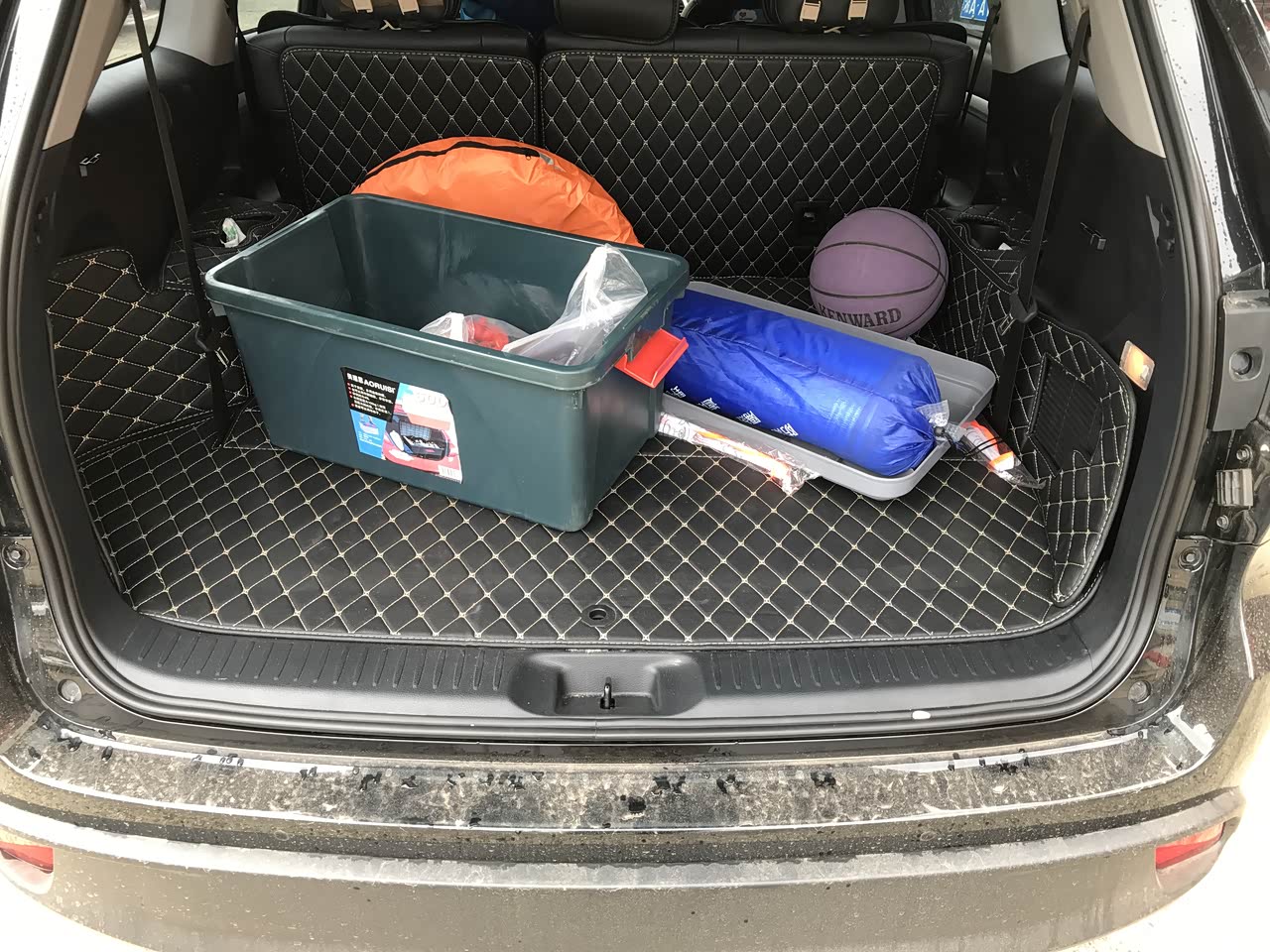 后备箱空间还很足,我把第三排的座椅放倒了,放了一些孩子们常用的一些玩具