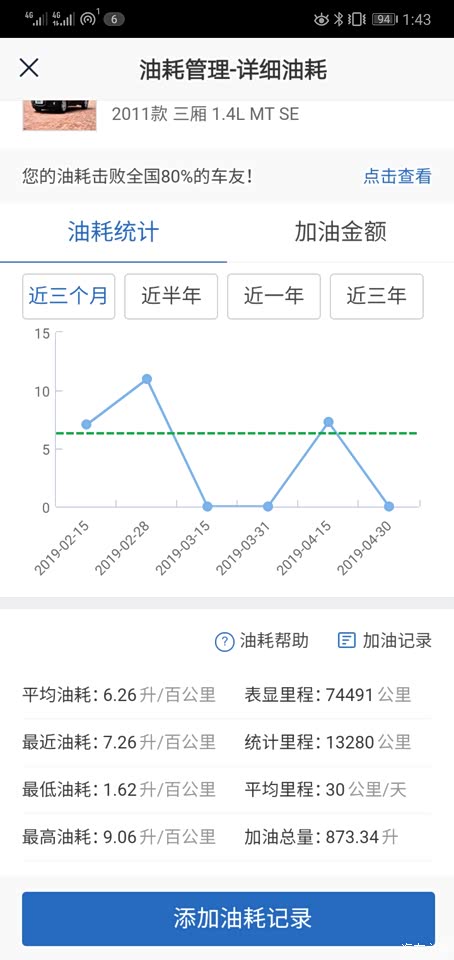 油耗的记录,汽车之家的截图,油耗真心的不高