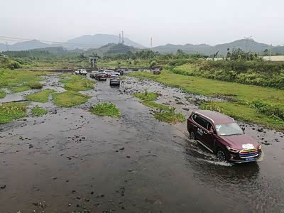 泥潭等路面脱困能力也很强大!湿滑路面水坑地段,D90的四驱加后差就能够应对自如!