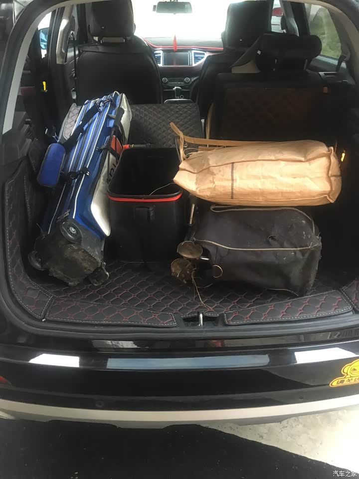 后备箱完全可以放下三个钓箱,哈哈总之体积很大,