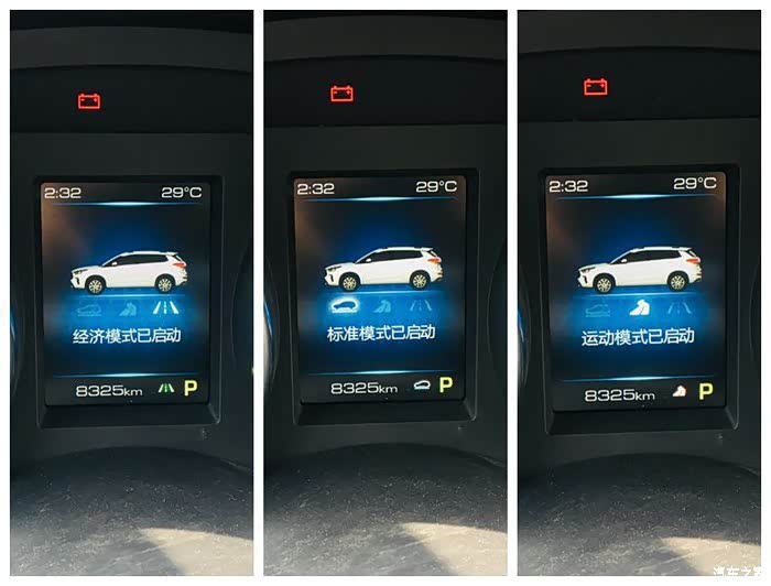 三种驾驶模式的选择,想要快速超车建议使用运动模式,我一般平时开车都是标准模式,懒得切换,现在也习惯了