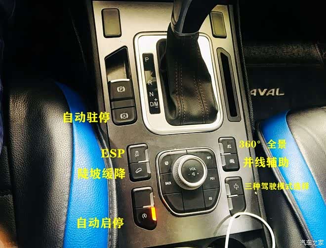 各种功能给大家标注出来了,都是很实用的功能,自动启停可能鸡肋了点,自动驻停啊,ESP,陡坡缓降都很实