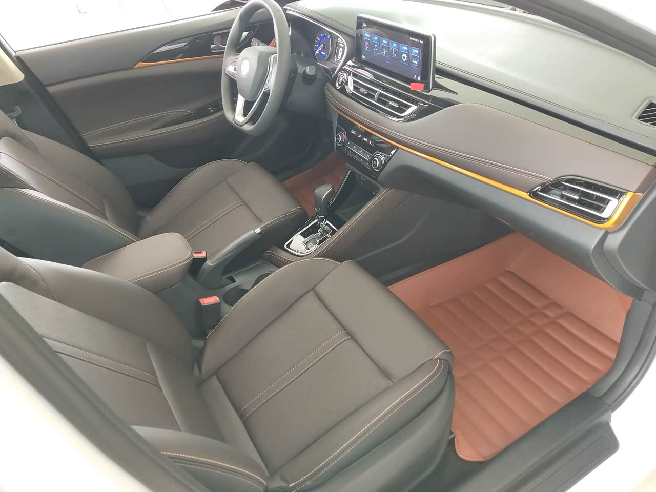 这个内饰必须要说一下设计风格年轻时尚。而且用料特别足,中控台,门把手,门板,扶手箱全部都是真皮包裹,包括座椅。减值这个用量不要太实在。