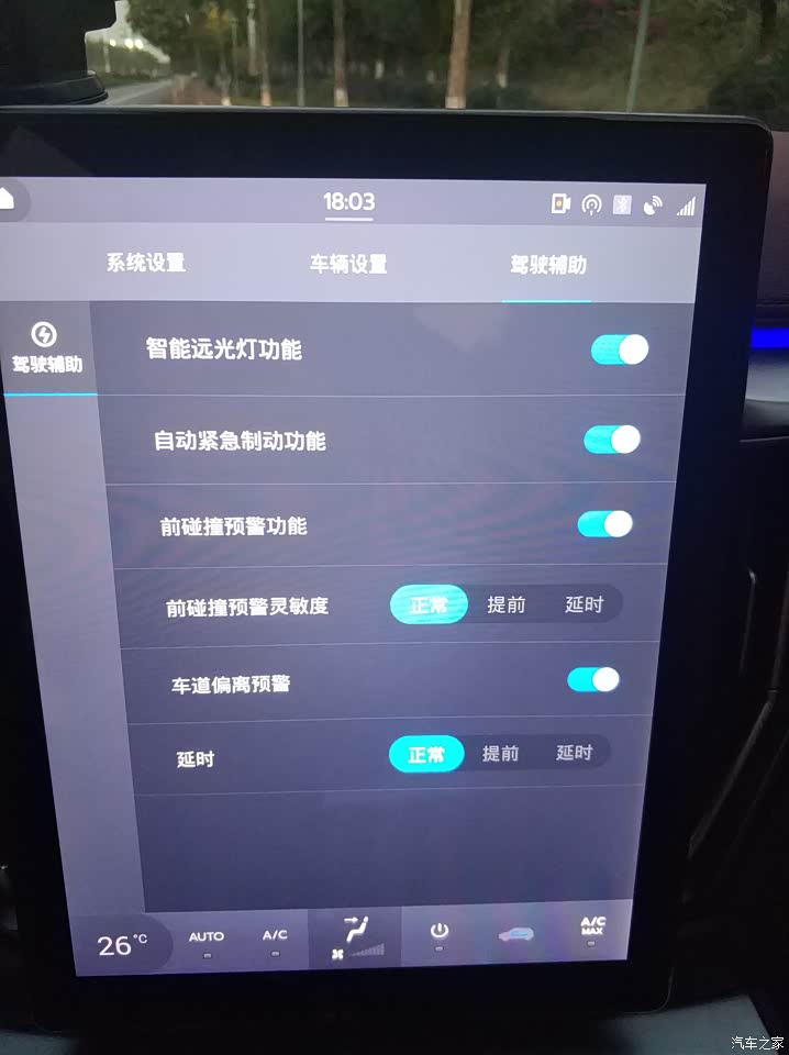 标配ESP车身稳定系统,还配置ADAS系统,自适应远近光系统,ACC自适应巡航,车道偏离提醒,前碰撞预警,紧急制动辅助和自动紧急制动等,车道偏移预警这功能特别好用,特别是在高速的时间,驾驶难免会麻木,有了这功能可以很好提醒驾驶员保持注意力。