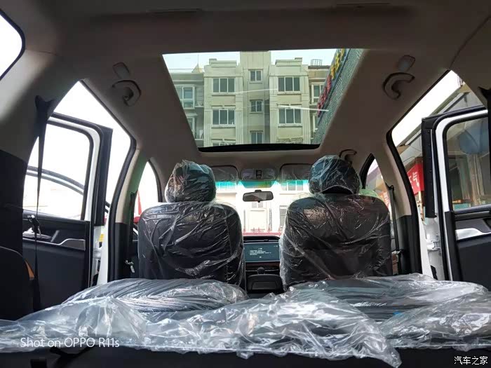 天窗屏很大,坐里头车顶本就高,再结合天窗一点都不压抑,另外值得一提的事,这车用料真的下功夫,配置上没省钱,空调居然是独立压缩机双区控制,后排空调可独立控制,而且每个座位上都有出风口,这样的配置只在高端mpv上见过,可能有出风口不习惯,独立空调两个压缩机的车就不多啦。