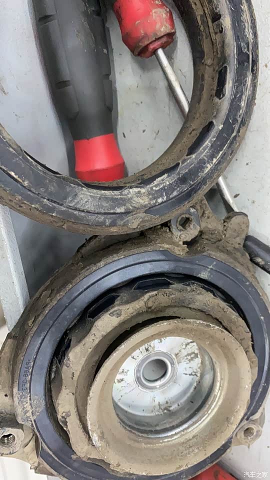 前减震器轴承垫圈磨损导致吃胎,起步低速有异响,换了左边右边又出现!建议出现此问题的车主同时更换。