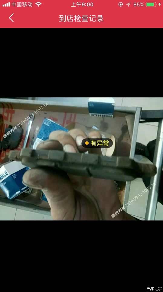 一年前4S店换空滤的时候师傅也提醒过刹车片快没了,下次保养最好换掉。