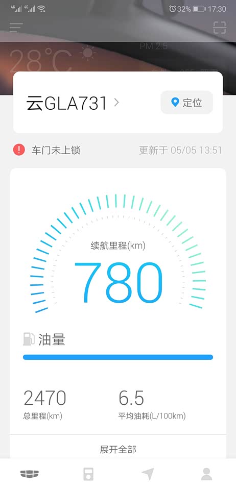 刚提那会,标盘显示9L/100KM,新车首保前油耗高点很正常;不过现在表显基本可以在6.5L左右了。