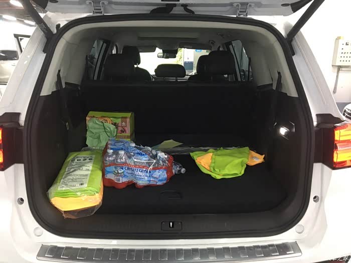 看,随便放点儿东西而已咯,最后一排座椅保持常放倒状态,呃~就是车身要是能长个十几厘米的也好~~