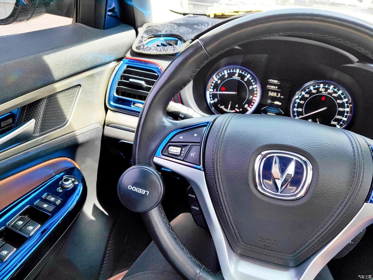 这款车的内饰跟现在的新款没法比,都已经将近20万的车了,但是座进去还是感觉没有档次,塑料感太强。不像现在新款简单的按钮,而且软内饰居多好歹看着也像个样子啦。内饰上我家老公从网上买了金属贴片,自己倒腾一个多小时贴到了车上,瞬间感觉好看不少。