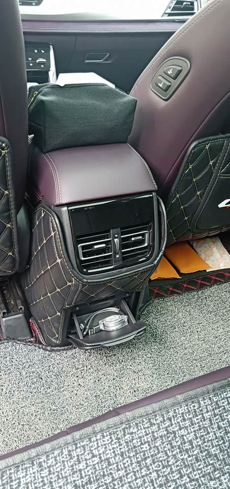 舒适性配置比较多 紫色的内饰说老实话我从来没想过 择日不如撞日 遇见了就是缘分 全车氛围灯 前排通风加热 后排出风口和座椅角度调节都是加分项目 唯一缺少的实用性配置就是电动尾门 后期虽然可以加装 但总归没有原厂来的放心