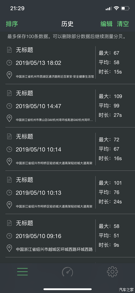 第一个67和下面72、58是在市区开的噪音.109和101是高速100码的噪音,整体不错。