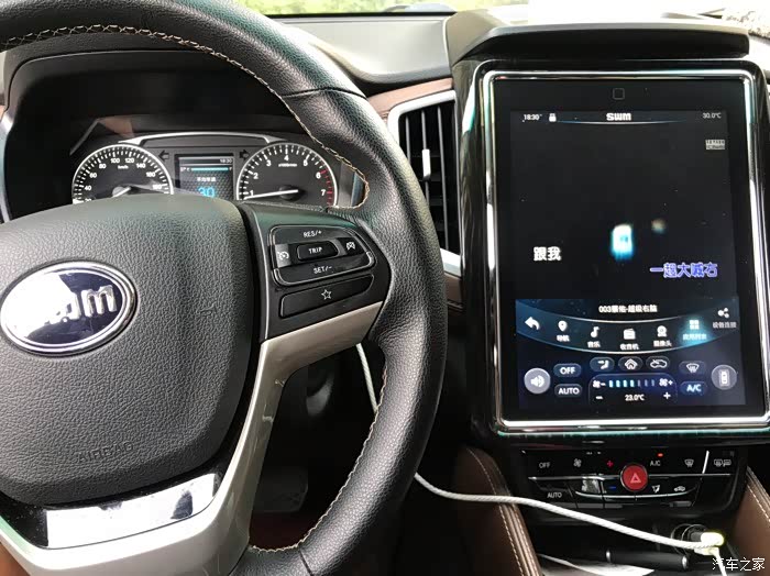 皮座椅棕色和黑色搭配让车的内室写的格外上档次。中控大屏幕就像小电脑一样看东西特别清晰,多功能方向盘也很方便,随时可以接打电话也很方便、电动天窗也是很方便、让我家的小孩子就喜欢把头伸到天窗外面看风景。