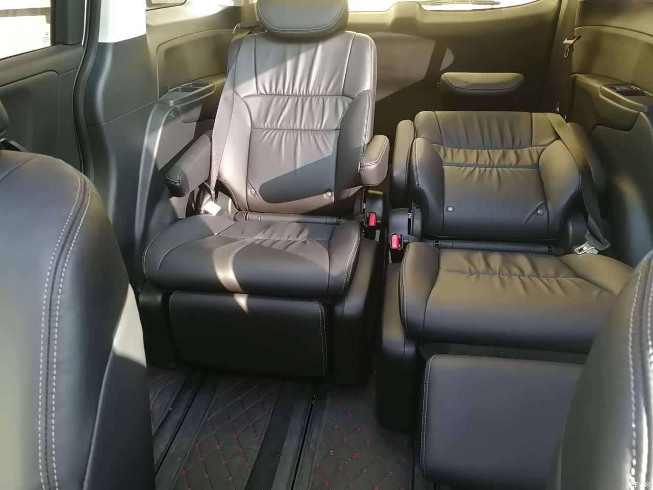 考虑到一家老小出行的舒适性,大空间是刚需,另外二排独立座椅配腿拖也是父母选车的加分项。这个腿拖配置GL8就没有了。三排座椅乘坐空间也丝毫不差,只不过坐垫长度感觉稍短,对腿部的支撑偏弱。不过平时三排座椅基本不用,折叠翻转后和后备箱一平,瞬间增大后备箱的容量。