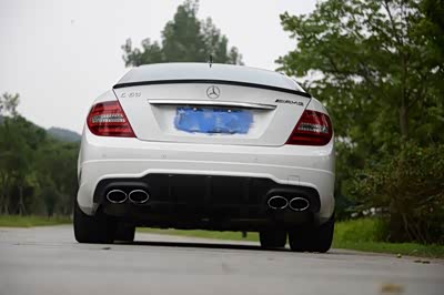 W204外观硬朗,4出排气很凶,507自带 black版本机盖,非常帅