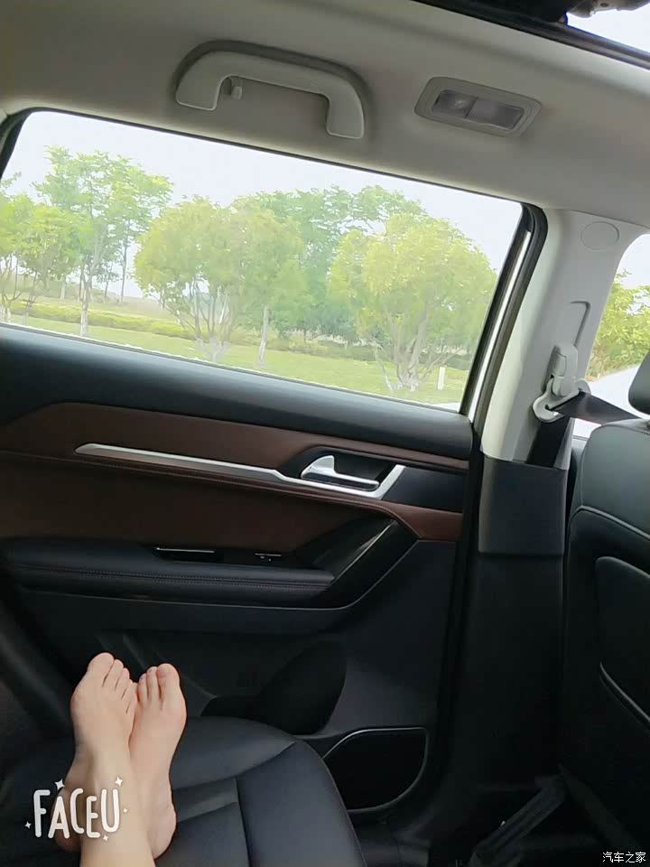 空间足够大,媳妇座副驾把座位调到最后面的位置,然后椅背打下来躺着,我们七岁小孩在后排睡觉,此时此刻内心非常满足。