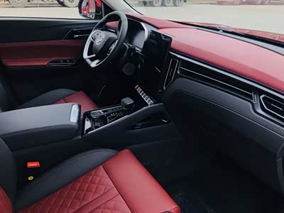 内饰设计年轻时尚,红黑配色很经典,双色拼接的座椅也是非常个性了。12英寸的液晶仪表,10.4英寸的中控大屏,又显档次又实用,显示效果清晰,哪怕在与太阳地儿里也能看清楚。