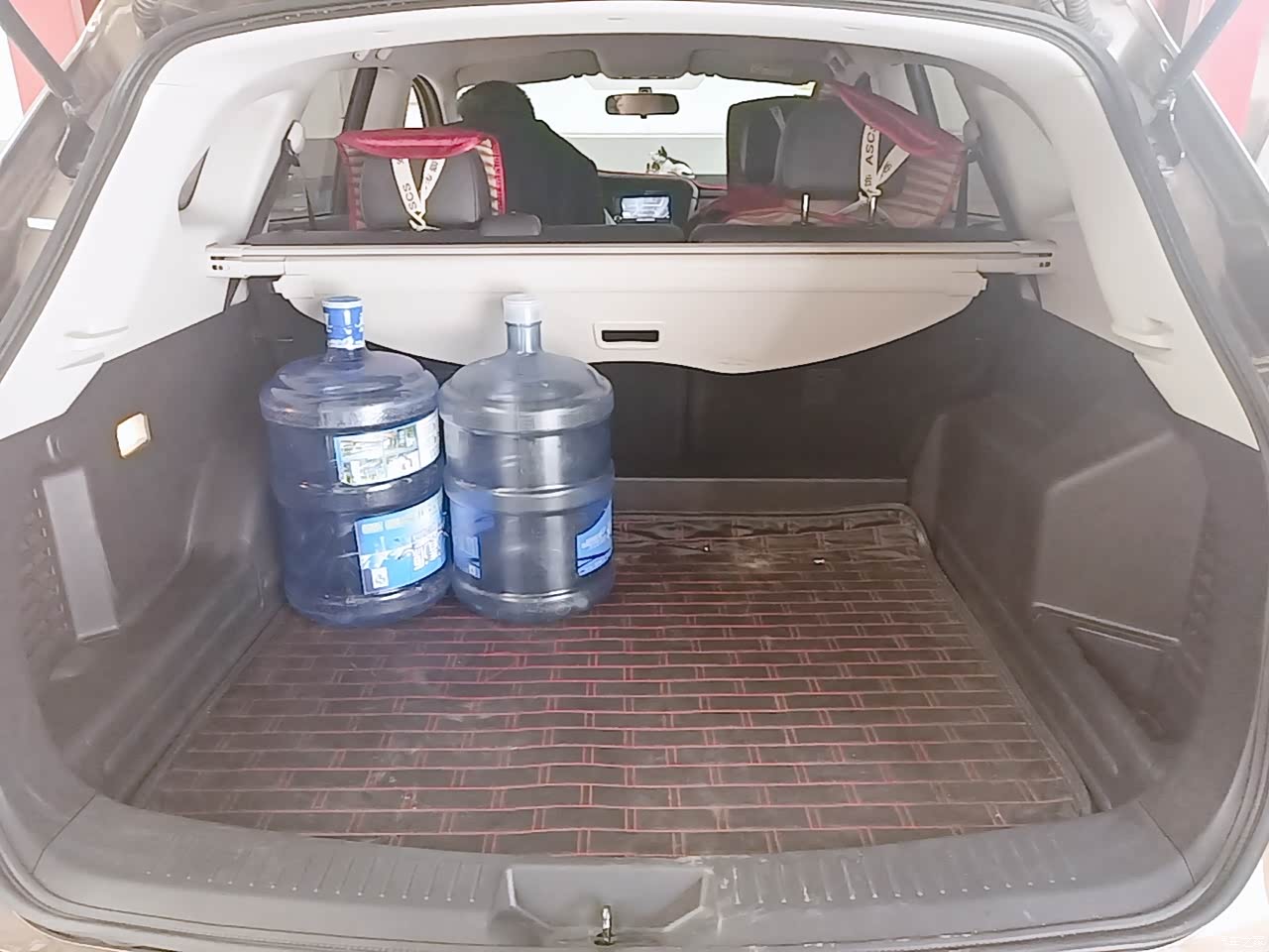 后背箱还挺平整的,能放好多东西。感觉能放二十个这样的水桶?不知道能不能行……