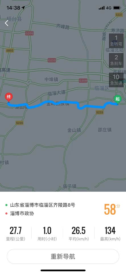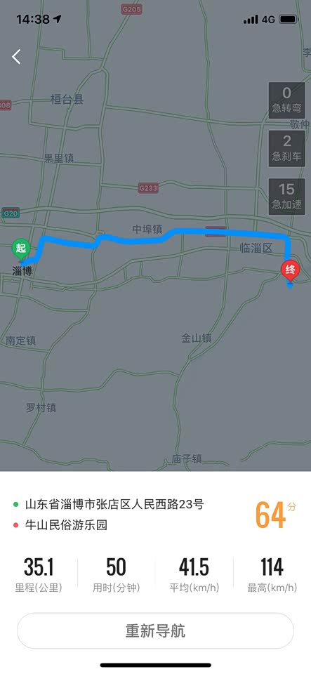 我测试了一下城市间道路跑到126还有推背感,然后我没敢再去踩,路况不是很好,然后我看了一下导航来回的信息是如下114是去的,134是回来的导航有很大误差,其实去的时候我测试的,126可能时间短没反应过来。