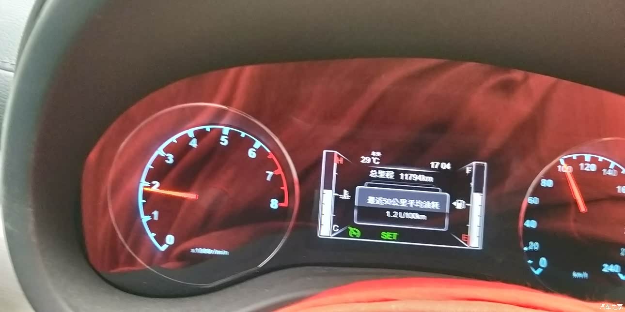 城市道路:近一月来,就在镇上跑,大概单边就一公里多点,没开空调,表显平均50公里是12.1L。 高速路段的表现:在高速公路上,一般100公里/小时定速巡航,表显平均50公里是5.0L至6.0L。开空调的话就5.7L至6.8L的样子。 从提车平均油耗7.7L降到现在的6.8L。还算满意哦!😸😸😸(但大部分是在高速上跑的哦)