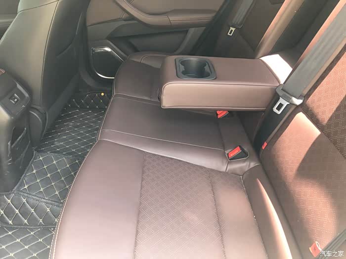 后排带着扶手箱,坐在后排可以把胳膊搭上去,这样坐在后排真是舒服多了,还可以放上饮料真的方便