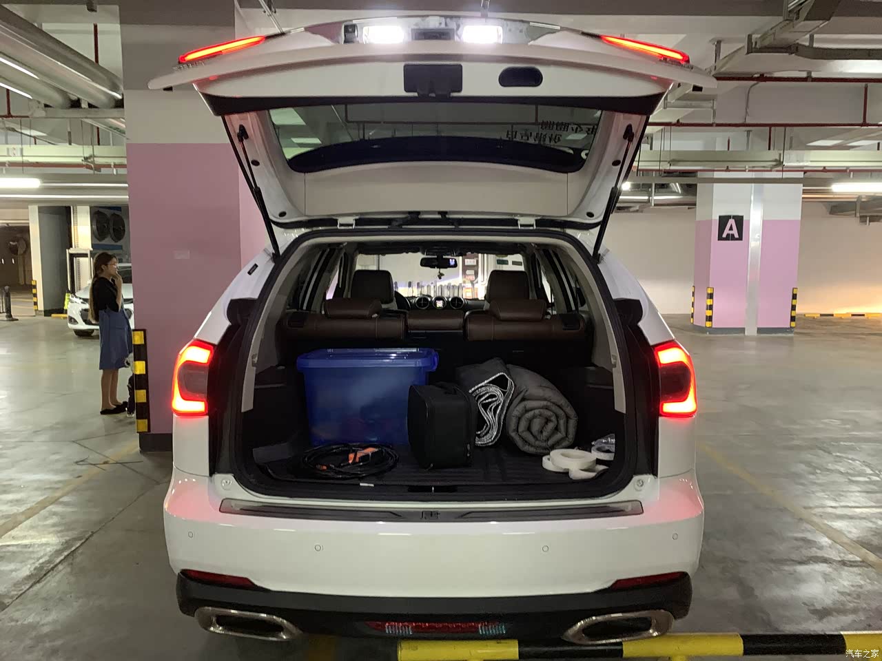 后备箱空间很大,后排放到了可以睡两个成年人,腿还能伸直,还没尝试过睡车里。