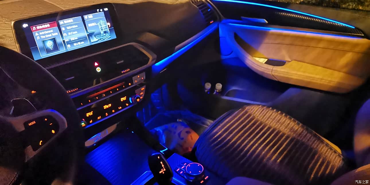 内饰虽然没啥设计感,但胜在质感一流,能触碰到的地方全部软性材质包裹,宝马还是真的舍得用料的。车门氛围灯带有些许断点,不严重,但是会逼死处女座!!!