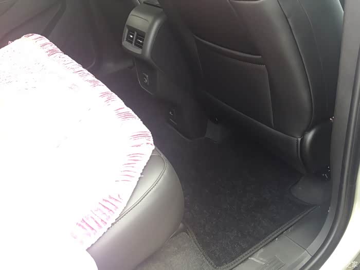前排座椅调到较后的位置时,后排腿部空间依旧很宽,最主要后排地板中间没有突起,这个很棒