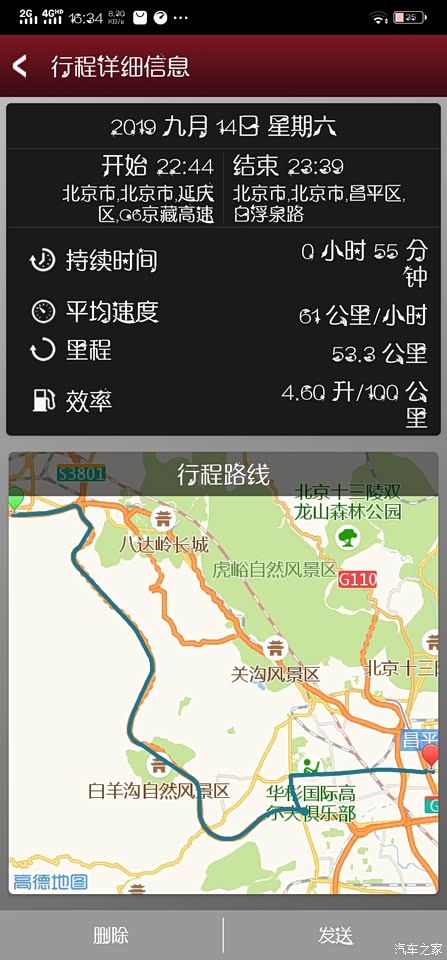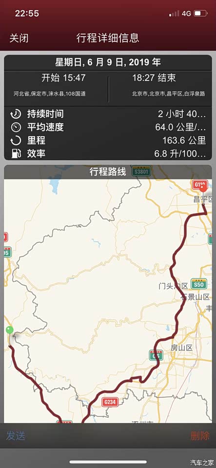 目前软件显示油耗最低的一次行程4.6