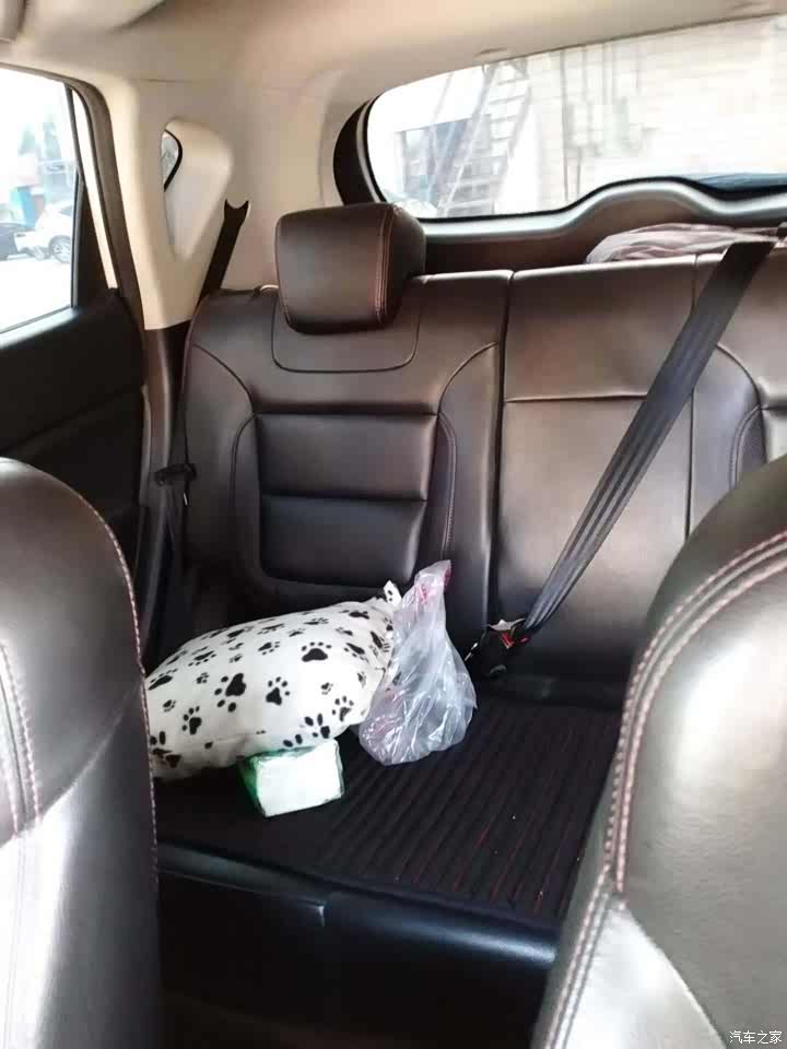 真皮座椅耐用舒适。后排座椅是平的,平时出门孩子平躺在上面完全没有问题。而且后排坐3个大人也不挤,170的身高,160斤坐在后排还有两拳空余。