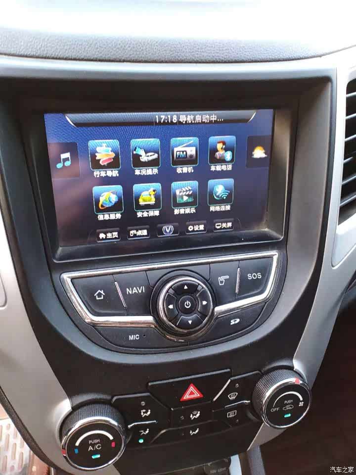 液晶显示屏功能齐全,导航,倒车影像,多媒体都有了,下方各功能按钮安排的也较合理。