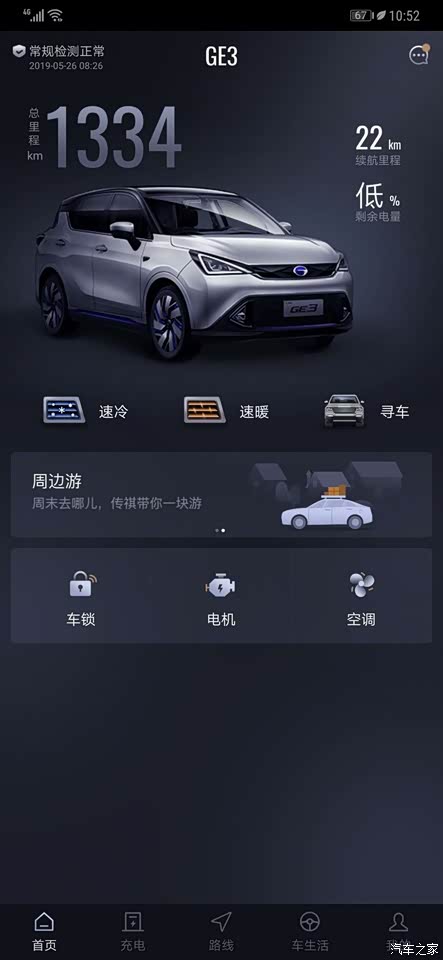 在杭州深港提了这辆小白GE3,越开越喜欢,这不,已经又到要二保的时候。也很快,转眼就要15000公里。为啥会这么快呢?那不是因为GE3 530这款车子,实在是太省钱了。汽油车大家都知道,每公里四五毛的,已经是非常省油了,如果一万五千公里,怎么也要六七千块钱油费了诶。而我的GE3,说实话,家里充电桩的电表,充了500块(支付宝充500送25,成了525),到现在还有424块,才花了100块钱电。然后飞线在家里,估计也有用200块钱电费。平时也就在单位随车充也用用,方便的很,反正有的是时间。和有车比较起来,开销可以忽略不计。为了去保养,特意办个ETC,难得进次城,ETC打6.6折。广汽新能源APP有次活动,443块钱,我买了4次汽车保养。也就是二保,我应该是不需要花钱。也就过路费。